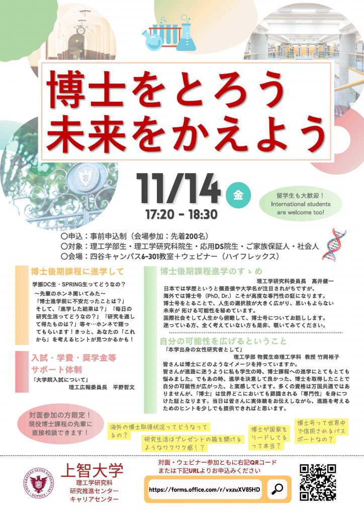 「博士をとろう 未来をかえよう」博士後期課程進学イベントのご案内