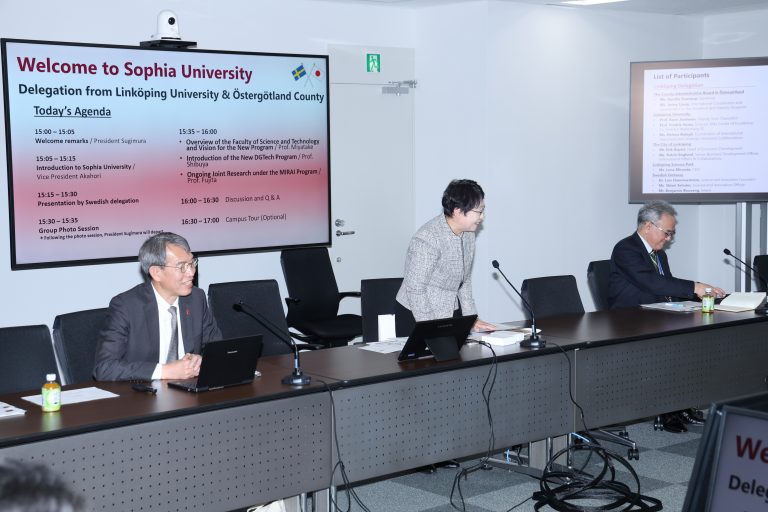 4月9日、エステルイェートランド県知事およびリンショーピン大学副学長を含むスウェーデン代表団(計11名)が上智大学を訪れ、意見交換および学内視察を行いました。