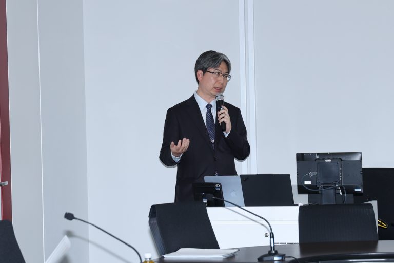 さらに、理工学部物質生命理工学科の藤田正博教授からは、自身の研究分野であるイオン液体(ionic liquid)の紹介とともに、現在MIRAIで進められているSDGsへの貢献を目指した共同研究を推進する4つのGlobal Challenge Team(GCT)の1つ、「GCT materials」のCo-chairとしての活動内容や、リンショーピン大学との国際共同研究の実績が共有されました。
